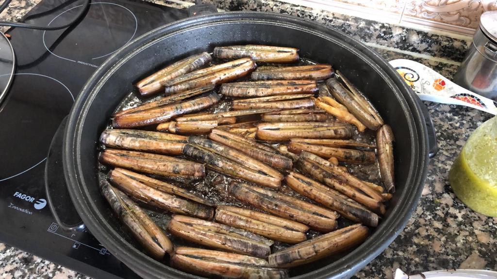 Colocamos las navajas en la plancha y, en cuanto se abran, las dejamos siempre sobre el lado de la concha durante 4 minutos.